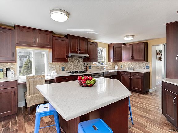 Wonderful, updated home in the popular Berkeley and Regis neighborhood * Enjoy this spacious floor plan with 2,856 finished square feet * Warm natural light throughout the home * Awesome gourmet kitchen with updated cabinets, quartz counter tops, farmhouse kitchen sink, island, stainless appliances, gas cooktop, built-in oven and microwave * Newer Acacia wood flooring on the main floor enhance this home * Open concept with a large great room and dining area * Upper floor has three nice size bedrooms and an updated bath with a jetted tub * Non-conforming bedroom in the basement featuring an adjoining remodeled bath with a large shower and double vanity * Lots of entertaining can be enjoyed on the deck and patio area in the huge fenced back yard * Oversized two car detached garage * RV Parking * Convenient location to downtown Denver and the surrounding communities * This Home Is Ready To Move In And Enjoy!