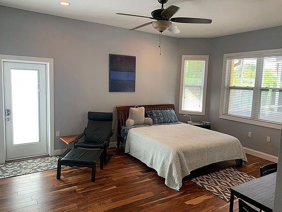 This is a Master Bedroom / Bathroom FURNISHED suite in a 2700 square foot house, walled off with a separate entrance. With a total of 504 indoor square feet, it's a separate attached suite, with a huge master bathroom with Jacuzzi tub, and separate walk in tiled shower, walk in closet, kitchenette and large living area. Wood floors, tile in bathroom, with access to outside area, your own side lawn and outdoor area also. Entrance is through a new side door with electronic keypad. This is for professionals needing a temporary place to live. 6 month lease preferred, however shorter durations will be considered. If unfurnished is preferred, furniture can be removed with no issue. Owner pays for all utilities. No smoking allowed. 1 Parking spot on driveway, or on street Cleaning and supplies are tenant's responsibility Side yard is for tenant's use and enjoyment