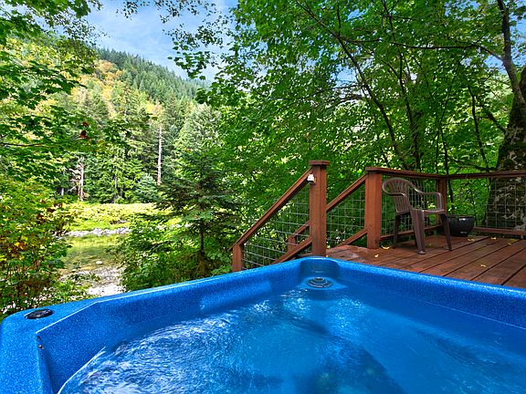 Your private getaway nestled on the banks of the Skykomish River in gated community! Open floor plan, cozy wood stove, vaulted ceilings, large windows and a unique skybridge to take in the amazing view. One bedroom plus loft. Perched high above the river out of floodplain on unique lot with multiple decks, hot tub, fire-pit. Fully furnished, turn-key mountain getaway and successful vacation rental generating over $30k/year. Ideal access to Stevens Pass and the Sky Valley's best recreation.