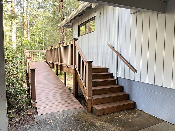 Super charming 2 bedroom, 2 bathroom, 2-level home in a wonderful, private setting located just off of Clear Lake Rd. This property features a ramp & stairs from carport to front deck. Living room features wood floors, center fireplace, corner of windows & sliding glass door to deck. Kitchen includes FS range, FS refrigerator, BI dishwasher & corner sink. Carpeted stairs lead to lower family room, laundry room & attached tandem garage. Family room includes storage closets, updated bathroom & sliding glass door to backyard. Windows will need to be replaced. Come out & take a look today! (Please be aware that there are monitored exterior cameras on the property)
