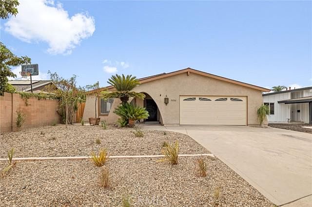 Lovely single-level living. New wide-plank flooring enhances the easy flow to this home's floor plan. Upon entering the home, you're greeted by the large open floor plan and cathedral ceiling in the living room and dining area. The light and bright feel draws you into the kitchen open to family room or even eating area - lots of options for you. Wood cabinets, lots of counter space and granite countertops with newer appliances make for a happy kitchen with breakfast bar. Sliding doors lead out to the newly landscaped yard which features covered patio, nice grass area and low water landscaping with sprinkler system. Back inside and down the hall with new tile flooring, you'll find the 3 bedrooms with new flooring and updated bathrooms. The primary bedroom features sliding doors to the yard as well. Close to all highways, shopping and schools. And don't miss the central air to keep cool on these crazy hot days.