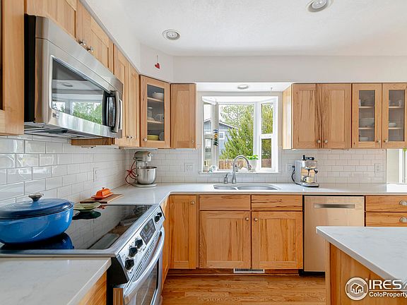 Look no further! This fabulous 5BR home blends modern comfort, flexible living spaces and a friendly community vibe. Tucked into a quiet neighborhood where bikes and scooters rule the road, you'll love the everyday joy of friendly waves and neighborly connections. Step inside to spacious sunlit rooms with hardwood floors and custom lighting. The beautifully updated kitchen features quartz countertops, generous storage, and a cheerful bay window overlooking the backyard. The light and bright breakfast nook flows into the inviting family room with a brand-new woodstove insert-ideal for movie nights, game nights or unwinding by the fire. The bonus sunroom is perfect for playtime, hobbies, or seamless indoor-outdoor living. Hosting is a breeze in the formal dining room with doors that open to the large deck. Upstairs, you'll find 4BR's and stylishly renovated bathrooms with modern tile, flooring and finishes. The finished basement adds even more flexibility, with new carpet, a 5th BR and full bath-great for guests, a home office, or a quiet retreat. Oversized laundry room makes chores a breeze w/sink, storage galore, and space for drying racks. Outside enjoy the modern deck-perfect for outdoor dining, lounging, and soaking up the sunshine. The fully fenced private backyard oasis is a true gardener's paradise bursting with berry trees, herbs, perennials and the cheerful sound of chirping birds. With six raised garden beds and a Rachio smart sprinkler system that keeps everything lush you'll have a slice of nature's joy in your own home! You'll feel good about this eco-friendly home w/ owned solar panels, new furnace, a new woodstove insert, a new sewer line, plus a newer roof and deck, this home has all the right updates! Be a part of this coveted Gunbarrel Green community, close to Boulder Country Club, miles of trails, and just minutes from Niwot and Boulder and BVSD schools! Come live your best Boulder lifestyle in this vibrant home--you're going to love it!