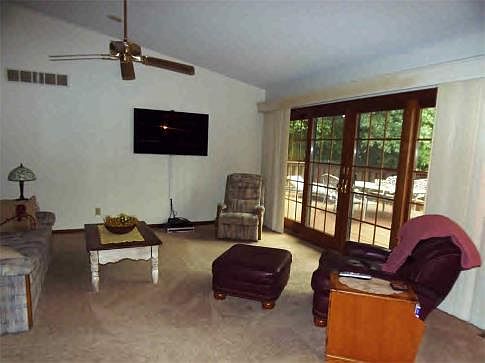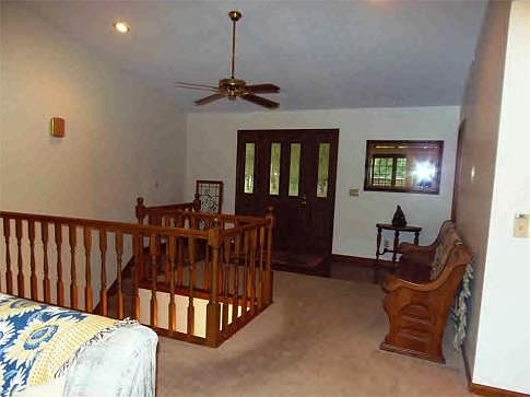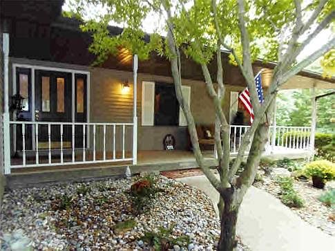 Home is very private, sitting in a large open area among trees. Huge deck and patio across both levels of house overlooking private backyard!! 18x22 detached storage garage plus 3 attached. Stainless steel appliances. Cathedral ceilings in master bedroom, finished walk out lower level with wet bar, sinks, 240 gallon hot water heater. Creek in rear boundry. (Refrigerator & mirror behind bar reserved.)