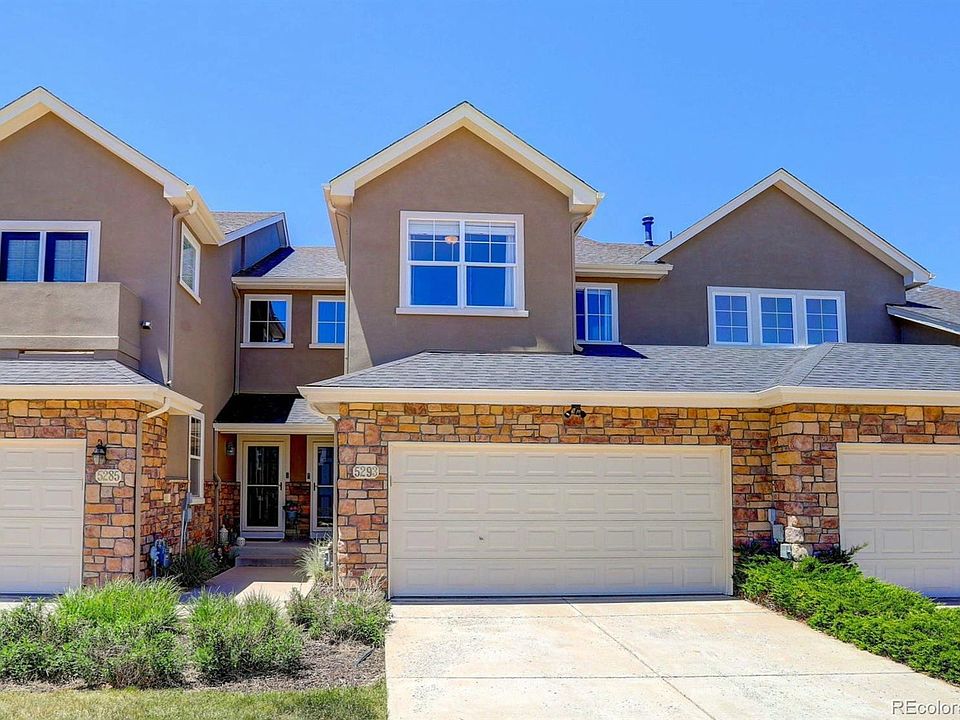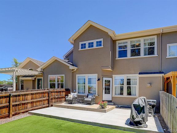 Welcome to your beautifully maintained 3-bedroom, 2.5-bathroom townhome nestled in scenic Castle Rock! As you enter, you'll be greeted by a vaulted entryway with soaring ceilings. Step into the living room enhanced by a cozy gas fireplace, upgraded flooring, and flooded with natural light. The open floor plan flows directly to the eat-in kitchen featuring timeless white cabinetry, ample cabinet space, and a convenient walk-in pantry. Retreat to the primary suite with vaulted ceilings, a private bath, and a large walk-in closet. Outside, there is a fantastic fenced backyard featuring artificial turf, offering a low-maintenance yet vibrant green space ideal for outdoor activities and leisure. It provides the perfect backdrop for relaxation and entertaining! The full, unfinished basement provides endless possibilities and the ability to create additional rooms for your needs. This charming unit boasts a recently painted exterior and a newer roof completed by the homeowner's association, providing peace of mind that units are well maintained. The unit is complete with a 2-car garage, offering ample space for your vehicles and storage needs. Access to Mitchell Creek Canyon Trail is just outside the unit, providing a scenic 3-mile out-and-back trail for walking and hiking through open space. Take advantage of Founders Village community amenities, including Founders Park with basketball, tennis, and pickleball courts, a playground, baseball fields, and a picnic area, as well as year-round access to the Ridge House Swimming Pool. Plus, enjoy easy access to I-25 and being just minutes away from downtown Castle Rock and numerous shopping centers! Don't miss the chance to make this your dream home in a vibrant community offering easy access to shopping, dining, entertainment, and outdoor recreation.