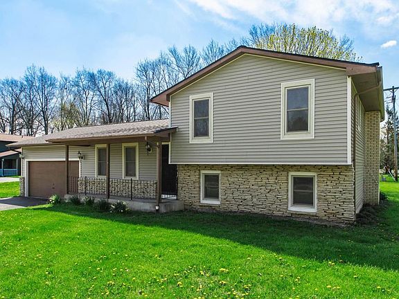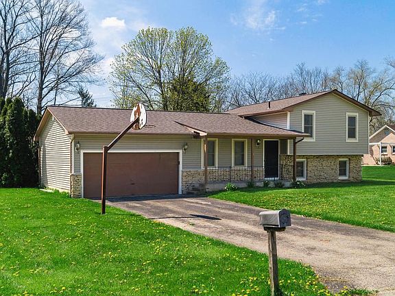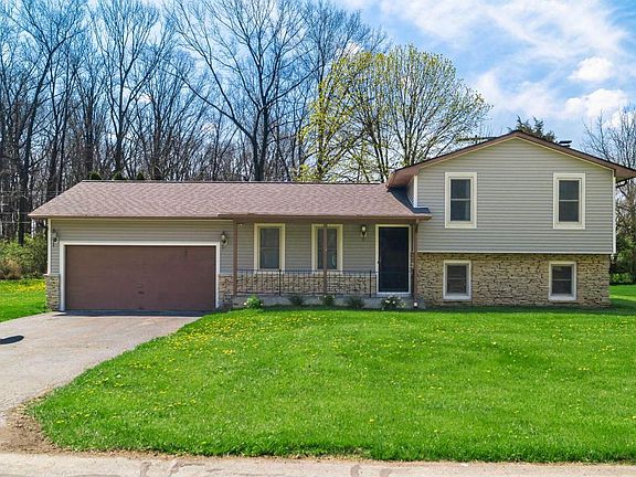 Great LOCATION and Great PRIVACY! 3 level split with 4 bedrooms, 2 full bathrooms that have been remodeled. It has a brick, wood burning fireplace in the lover level great room! Plenty of space in the back yard with tree line for privacy! Large 2 car garage with plenty of room for storage and 2 cars. Full basement with even more storage space or a blank canvas to remodel!! Southwestern CSD and Franklin County water!!