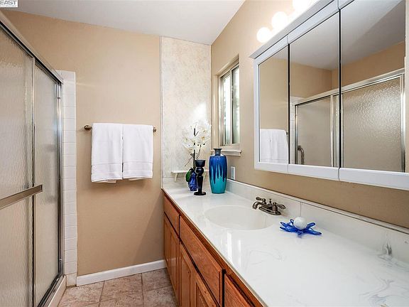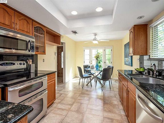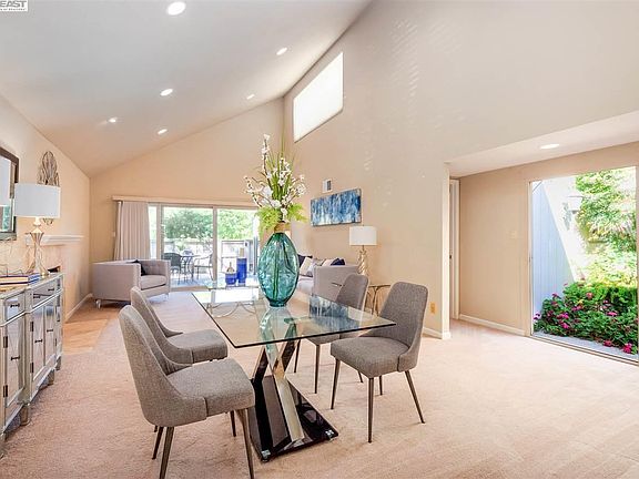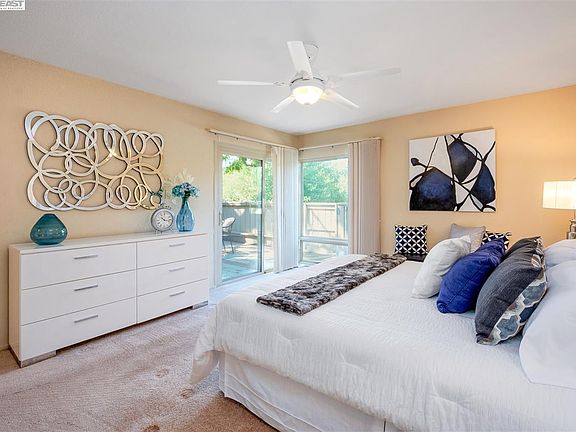 Open house this weekend only. Saturday 4/2, 12-2pm. Sunday 4/3, 12-2 pm. Superb location, less than 1 mile to Stoneridge Mall and Pleasanton BART station, easy access to highway 680. Walking distance (12 minute walk--0.6 miles) to Lydikson Elementary and even closer to Muirwood Park. Clean and super quiet 3 bedroom and 2 full bath single story home in desirable west side Pleasanton. End unit townhome with soundproofed walls, feels and lives like a single story, single family house. Attached 2 car garage with ample storage. New paint, new refrigerator included. Award winning Pleasanton schools: Lydikson Elementary, Hart Middle, and Foothill High. Vaulted ceilings and atrium in the center of the home provides lots of natural light. Outside garden maintenance, community pool, clubhouse, and private tennis courts are free. Desirable walking neighborhood with many trails. No smoking. Small pets may be considered with additional deposit. Minimum 1 year lease and month-to-month thereafter.