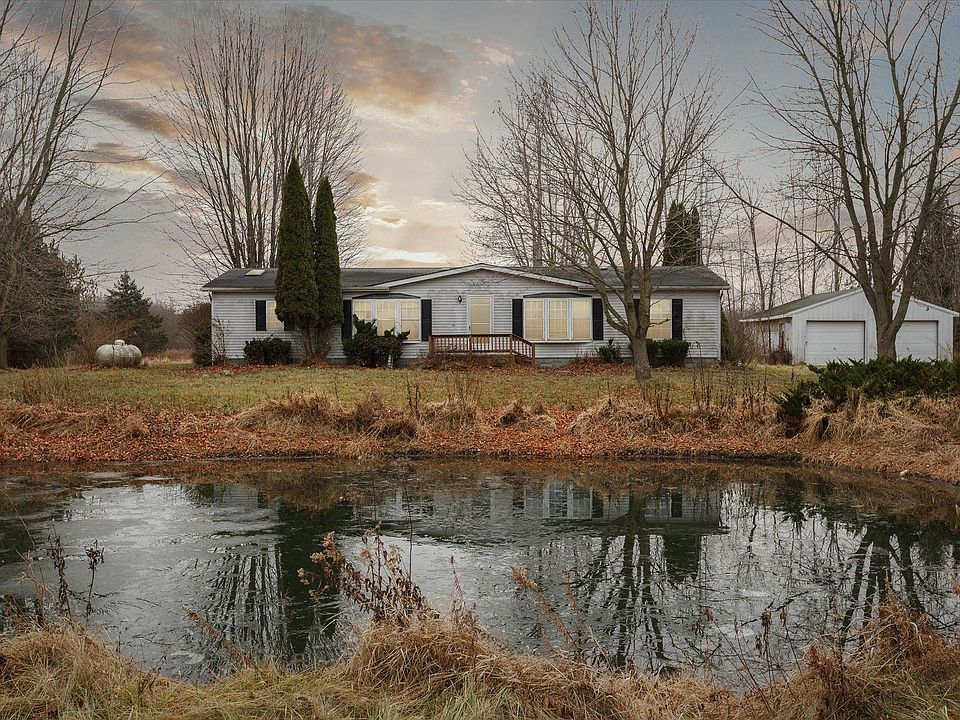 Opportunity awaits! Bring your tool belt and customize this home to your liking! 3 bedroom, 2 bathroom Manufactured home on over 10 acres with 2 ponds on the property! Detached 2 car garage for storage.