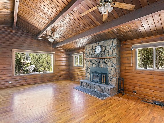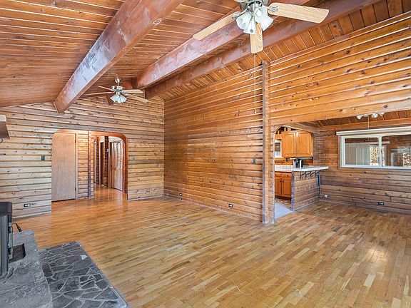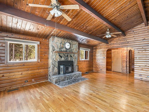 First time on the market in over 30 years. You know you are home as you approach this 2.32-acre property with fresh white country fencing welcoming you up the long circular paved driveway. Property is gated and fenced. The home is nestled in the mature Ponderosa pines with nice open spaces for gardening and enjoying the privacy and nature. It is also just minutes to great restaurants, State Park and Deschutes River. The architecture is Pan Abode Cedar Log Home. The floor to ceiling rock fireplace with new fireplace insert and wood walls is inviting and creates great warmth, stainless steel appliances and new resident septic system. The living space is large with many large windows. There are 3 bedrooms with one having access to the back patio, a separate oversized oil heated garage and oversized barn area ready for an RV, toys or animals. This is a double lot and includes to full well, 2 septic and 2 power mains.