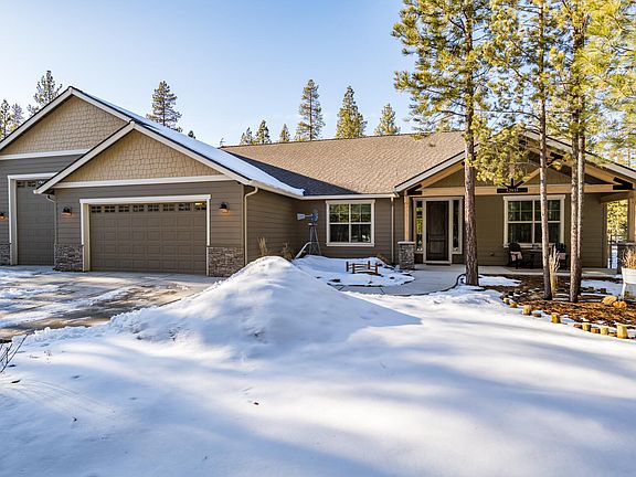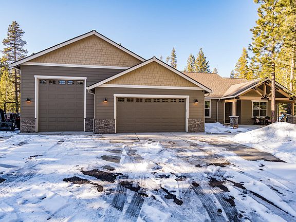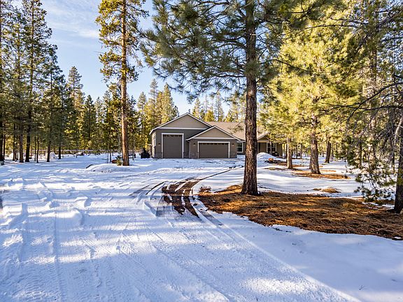 Come experience tranquility and solitude with a peaceful breeze through the tall pines in this custom home bordering the Deschutes National Forest on two sides with an adjoining lot for added privacy. This well maintained single level home has towering ceilings and an abundance of windows to flood the home with natural light and beautiful views. The carefully thought out floor plan features a large den off the entryway, spacious open great room and privacy between the guest bedrooms and the primary suite, highlighted by radiant heated floors in the ensuite bathroom. Luxurious finishes with a floor-to-ceiling stacked stone fireplace, custom cabinetry, solid surface countertops and wood and tile flooring throughout. Space for all your gear in the 1,126 square foot garage/shop including a 33' RV bay. With direct access to forest trails from the back gates of the fully fenced property and close proximity to the high lakes and Cascade mountains, this is Central Oregon living at its best!