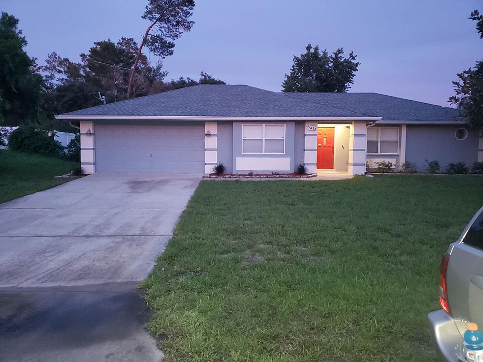 This roomy 2-bedroom house has a screened porch with a large back yard and only one side neighbor! Laminate floors, landscape maintenance and pest control included! 2-car garage with power door opener, inside laundry/utility room! Only 3-minute drive to State Road 50 which gives quick access to a wide variety of restaurants, businesses and shops as well as the toll road, and only a 5-minute drive to Publix!
