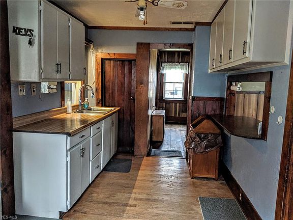 Beautiful setting with creek running through the back of the lot. Roof, siding, windows, furnace, front porch and rear deck have been updated. The garage building has a 1 bedroom apartment upstairs that is currently rented for $300/month. Back yard is fenced and has an additional quonset shed.