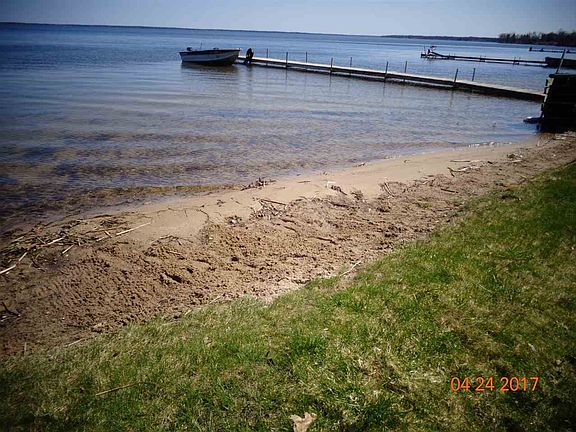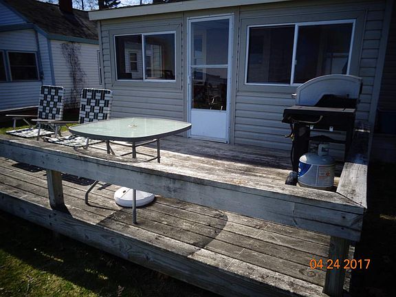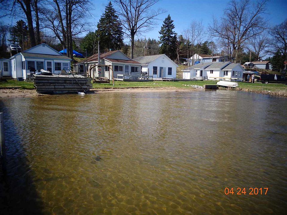 Privately owned 33.3 feet on south shore of Houghton Lake with sandy beach. Enjoy the lakefront like Miami Beach full sand, beautiful views and family friendly. Two bedroom with open floor plan. No association fees and room for possible garage with no township approval. Newer roof. 180 degrees of unrestricted views on largest lake in Michigan.