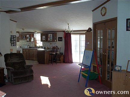 Single Family Home for sale by owner in Mount Morris, NY 14510. 1998 Very nice home that sits back off the road on 2 acres. Tree lined road front with some woods in back & sides and open yard makes this property feel like a park. Long, blacktop driveway with parking for 4, all power lines buried to home. 1512 sq ft, spacious open floor plan, eat in kitchen with breakfast bar open to dining/living room combo with sliding glass doors to private backyard. 3 bedrooms, with possible 4th, walk-in closets, thermal windows, 2 full baths and laundry/mud room. Large shed/barn, deck, public water, well on property, vinyl siding, new skirting 2012, approximately 3 year old hot water heater, and water regulator in 2013. Low utilities. Drapes/curtains, refrigerator, stove, portable dishwasher, washer, dryer, dog pen and outdoor playset included. York School District. Minutes from Letchworth State Park, Genesee Valley Greenway and Geneseo. This is a MUST SEE!