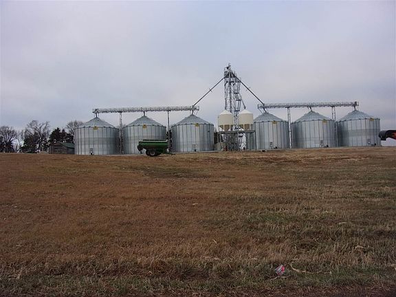 Wow! This 160 acre irrigated farm has 9 tower pivot with 100hp electric motor pumping 800 gallons a minute plus 300,000 bushel grain bin capacity (6) 50,000 bushel grain bins. This has automatic fill system. Property has ranch style home with double garage plus 24'x40' storage building plus 24'x40' Marvel Brute machine shed.