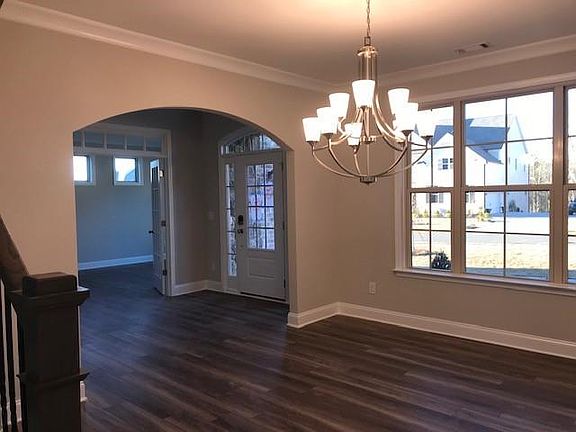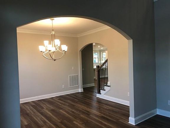The Chatsworth II by Lennar. Beautiful 3 sided brick home with double bay windows, guest suite on main, bright kitchen with big island and window over the sink. Two story family room and oversized home office. Large master suite with two closets, laundry room up. Wooded view out back. Fantastic amenities. Ready in December.