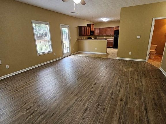 This large home offers convenience near Ft. Benning/Moore. Downstairs features a half bath, formal dining room, and a living room. The spacious kitchen includes a breakfast bar, walk-in pantry, and overlooks the family room with a gas log fireplace. Upstairs, the primary bedroom boasts a vaulted ceiling and a large walk-in closet. The master bath features a separate shower, soaking tub, and double vanity sinks. A large laundry room is conveniently located near the upstairs bedrooms. Three additional bedrooms, each with walk-in closets, share a guest bath to complete the second floor. The two-car garage provides storage and easy home access. Outside, the fully fenced backyard ensures privacy and security for family and pets.