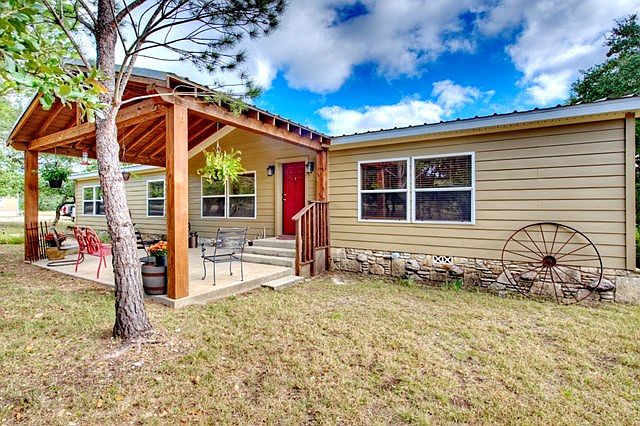 Home offers lots of amenities, SEE DOC's. Home on 14 plus ac. Lots of Oak trees, some cedars. Rock skirting, great front porch, back deck covered, Carport parks 4 vehicles w/workshop attached. New flooring except in bedrooms. New siding/hardiplank, new paint outside. 3 BR, 2 Bath with huge master bath with walk-in closet. Medal roof , Solar panels, with battery storage, installed 2015. Come see ! Currently has AG exempt, taxes only shows without exemptions dollars. Buyer should contact Gillespie County Tax office to verify their taxes & rate. LIST of amenities, water collection system in place up to 28k gal storage including about ground pool . Pool is used for water storage, can be converted back easily, pump & filter work. Four RV hook ups, Solar panels, wind gen with battery storage.