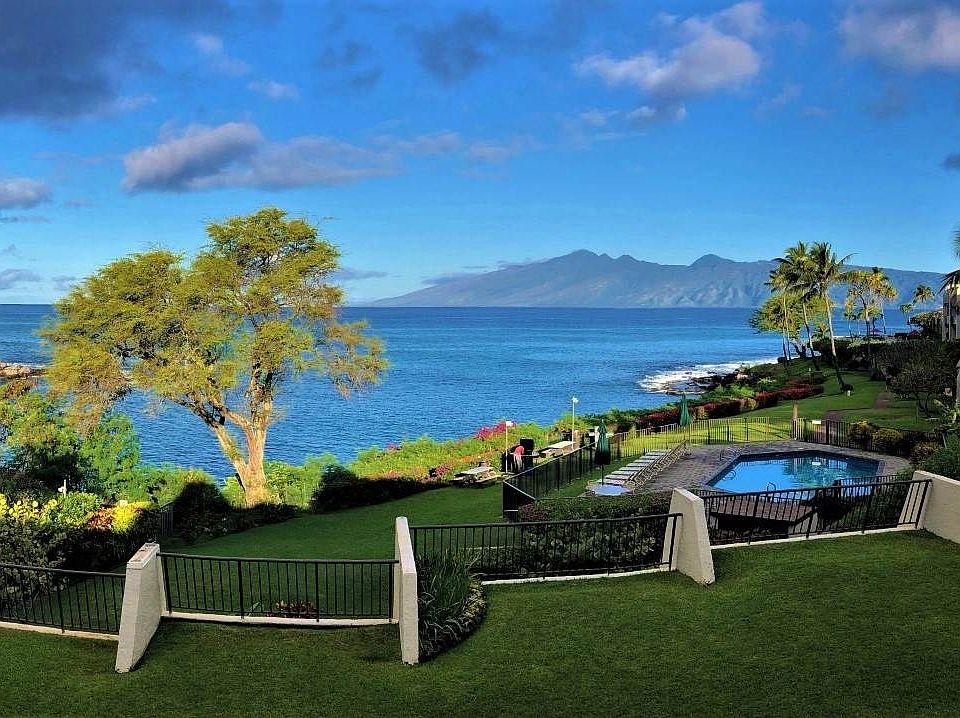 This is the Maui corner of paradise you have been dreaming about - looking across the pristine waters of Honokeana Cove and the blue Pacific to a spectacular view of Molokai! The Cove is home to some of the best snorkeling, diving and surfing that Maui has to offer. The huge lanai is the perfect spot for coffee in the morning as you watch the turtles in the cove and seasonal whale watching. Enjoy sunset dining as the electric lanai sunshade permits year-round lanai enjoyment, even in the hottest months. Additionally, the 3 zoned AC keeps the condo cool - and electric is included in the maintenance fee! Formerly a private residence, this two-bedroom, two bath home features all new furnishings, including appliances, cabinetry and carefree luxury vinyl flooring. Both bathrooms feature vanities with large drawers and gorgeous walk-in showers. There are two huge closets plus an owner's closet and a large attic storage area - big enough for surfboards and bicycles! Two oceanfront swimming pools are set amid the beautifully landscaped grounds along with several barbecue areas. Napili Bay, a beautiful crescent shaped sand beach is just several minutes away. The famed Kapalua Resort with championship golf courses and tennis gardens is a half a mile up the street. This unit is now in a private vacation rental program; buyers required to honor future existing rental reservations. One of the owners holds a Hawaii Real Estate License.