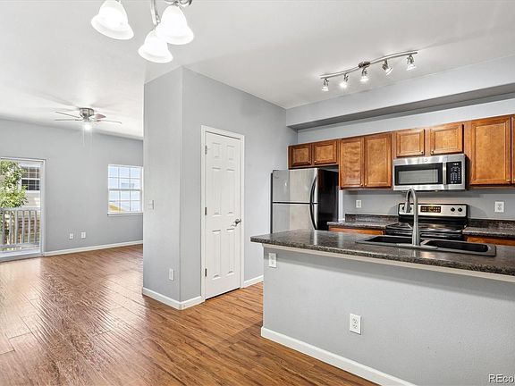 Great opportunity to own this top floor updated end unit for under $350! Perfect for 1st time homebuyer or investor. 2 year old carpeting throughout the bedrooms. New high-end laminate floors throughout. Eat-in updated kitchen with stainless appliances & large pantry. Spacious primary bedroom suite with 2 closets & 3/4 bath. Guest bedroom + full bath. 9x7 great balcony to enjoy morning coffee. Full size washer & dryer are included and are in the unit! Brand new furnace & a/c unit, 2019 water heater. Roof has been replaced recently as well. Don't forget to check out the basement area where you will find your own 8x10 private storage unit with high ceilings that is perfect for bike storage, tools or holiday decorations. Easy access to I-70 & the mountains and 12 min to downtown. Home is updated and the major mechanicals are new - move in condition!