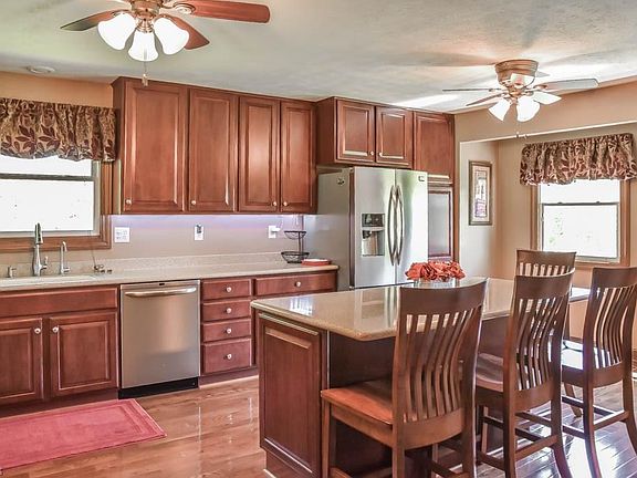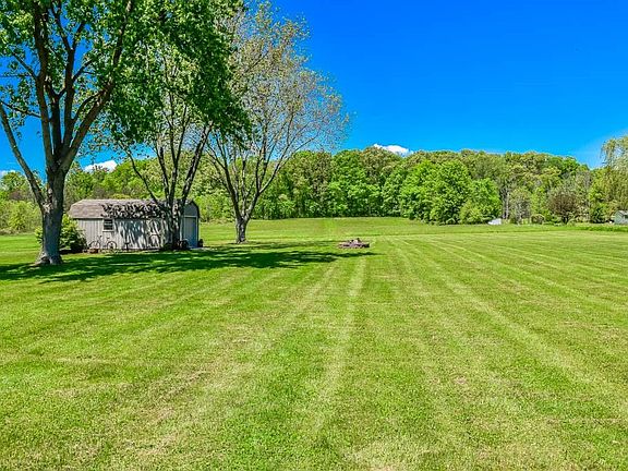 Absolutely gorgeous 4 bedroom, 3 full bath with 3,107 square feet on 5 acres! Perfect condition! Gleaming real oak hardwood floors throughout that will wow you! Plus super cozy brand new carpet in most rooms! Find your culinary inspiration in the stunning kitchen remodeled in 2013 with a center island, breakfast bar, stainless steel appliances, solid surface countertops and amazing full extension, soft close Merillat maple cabinets. Bonus walk-in pantry with extra cabinet and counter space! Host holiday meals in the formal dining room with crown molding and a beverage station. Gather in the spacious living room with French doors to the back deck overlooking your acreage! Down the hall, the master suite offers 2 closets and a private master bath updated in 2012. There are 2 additional bedrooms and a full bath. Fantastic storage with an extra deep, walk-in hall closet! Downstairs, there's a fourth bedroom with a full bath just around the corner; this is very convenient for visiting guests or simply extra space for your family. The lower level continues with a large utility room including laundry hookup plus an enormous recreation room with walkout access to the lovely covered patio. Shaded with land views - the perfect spot to enjoy your summer! Incredible backyard offers 2 12x24 storage sheds for all your lawn toys. 2-car side load garage with new insulated doors in 2014 as well as a driveway turnaround. Wonderfully maintained and move-in ready! A must-see!