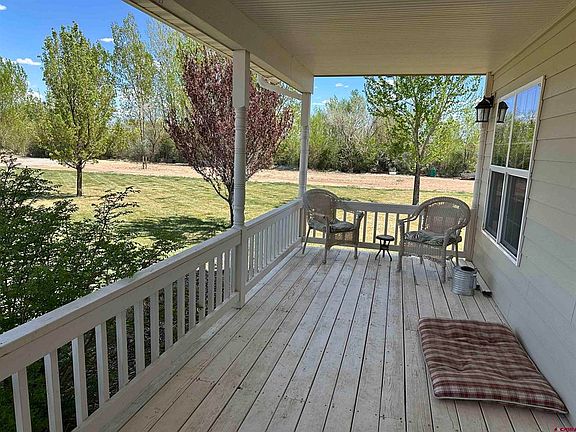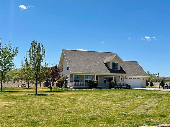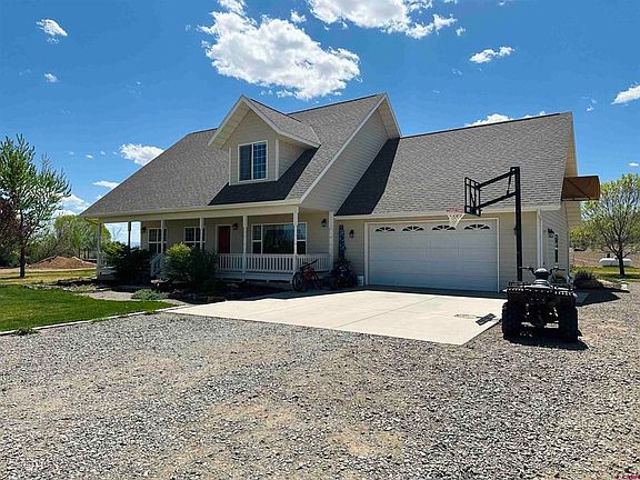 This 2,776 sq. ft. home sits on 2.98 irrigated acres and has views of the Grand Mesa. The home has 4 bedrooms, 2 bathrooms, in floor heat throughout the home and a wood stove. The kitchen, living area, and dinning area are open to each other. The kitchen has ample counter space and lots of cabinets and stainless steel appliances. To complete the kitchen is a breakfast knok that looks out to the yard. There are wood floors in the main level living spaces, large separate laundry room and a 2-car garage. The primary bedroom is on the main level. Upstairs has an additional living space/game room plus three good sized bedrooms and a full bath. The property has a newly fenced corral with a loafing shed, large garden space full of rasberries and asparagus. The nicely landscaped yard has a sprinkler system that is supplied by the irrigation water which is an adequate amount for getting the entire property irrigated if wanted. There is also a chicken coop for you as well as plenty of space for other animals. Sit on the covered front porch and enjoy the views of the Grand Mesa and the privacy of this property.