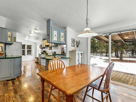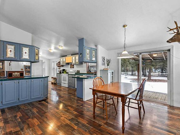 Location & Privacy in the heart of Central Oregon! The home is situated in the center of the property, surrounded by mature pines. Home features an open floor plan w/tons of natural light. Efficient wood burning stove in the open living area w/plenty of space to entertain. Recently updated w/chestnut wood look laminate flooring, new trim & paint. Open kitchen w/plenty of counter & cabinet space for storage. Spacious master suite w/french doors into the bath, complete w/dbl vanities, shower & corner soaking tub. Step outside w/sliding glass doors onto the covered back patio & grill area. Property is well maintained w/space & shelter for your animals. Close enough to town for shopping and services & still just minutes from Class A fishing, skiing & all the wonderful recreation Central Oregon is famous for. Space for storing all the toys, equipment or hobbies. Circular driveway, raised flower beds & RV Hookups. Plus a detached garage & storage building for storage.