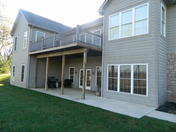 This ranch home is a rare find in Teays Valley Schools sitting on a wide 2.6 acre lot with creek at back of the property. Exterior is hardy plank with brick front and has a side load 3 car garage with extra wide concrete drive. The floor plan is open throughout with upgrades in every room. Gleaming cherry hardwood floors on most of main level. Fully applianced kitchen has corian counters, and plenty of cherry cabinets. Great room has vaulted ceilings and walks out to deck that overlooks the back yard. Master suite also has a walk out to deck. Master bath has dbl sinks, Jacuzzi tub and dbl shower. Basement is 2500 sq ft finished walk out basement. Large entertainment area, full bath, bar area and all walks out to large patio area. Finished living space over 3 car garage also.