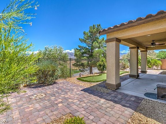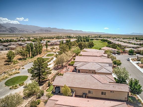 This stunning home boasts an enviable location with frontage on the golf course, providing picturesque views and a serene atmosphere. With 3 bedrooms and a den, this property offers versatile living spaces, allowing for various lifestyle needs. The 2 baths are equipped with modern amenities, and the upgraded appliances in the kitchen enhance both functionality and style. The kitchen itself features 12x24 inch tile, adding a touch of sophistication to the space. The primary suite is a retreat in itself, offering both tub and shower, plus dual sinks & walk-in closet. The extended patio cover further extends the living space, creating an ideal spot for outdoor gatherings or relaxation. One of the standout features of this property is the backyard, which includes a 3-hole putting green. Perfect for golf enthusiasts or those who enjoy outdoor recreation, this unique feature adds both entertainment and aesthetic value. Valley offers endless possibilities for your free time, & 45min to LV!