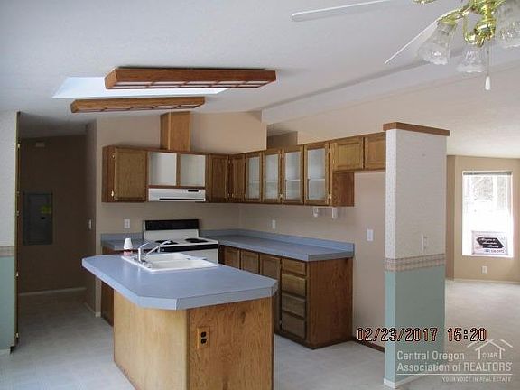 Nice set back from street, this Fuqua home sits on 2.51+/- ac.The home features a formal living room with bay windows, island kitchen, oak cabinets,vaulted ceilings, skylights, Large family room addition w/wood stove for those cold winter nights, 3 Bdrm w/Master separation (French doors to Master suite & bath) 2.5 Bath. Quality throughout. Attached 2 car finished garage & (24x48) 1152 sq ft shop w/cement floor & room for all your toys to play in Central Oregon on the water or the mountains.