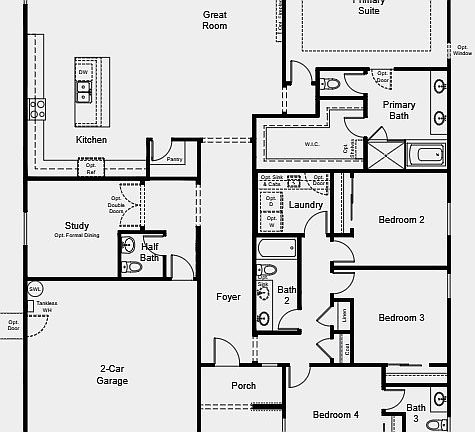 REPRESENTATIVE PHOTOS ADDED. May Completion. Experience modern living in the Rose floor plan, optimizing space and light. Through the porch into the foyer, discover open-concept living: dining, kitchen with island, and great room—perfect for gatherings. Choose a covered outdoor area for extended entertaining. A luxurious primary suite awaits at the back with a Zen-like bathroom and walk-in closet. Find a study or formal dining area and a half bath near the garage. Across, explore 2 baths, laundry, 3 bedrooms, and an extra garage. Structural options include: standard garage door, 12' center meet sliding glass door, finished garage, 8' interior doors, super shower in primary bathroom, door at primary walk-in closet to laundry room, bbq stub and additional sink at secondary bath. MLS#