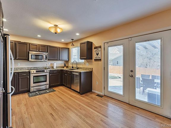 Gorgeous 4 bedroom home in Thornton with vaulted ceilings, wood floors, gourmet kitchen to include stainless steel appliances and granite counter tops. Incredible open floor plan and huge windows give lots of natural light throughout home. Upstairs you will find spacious loft, 2 bedrooms, full bathroom and great size master bedroom with beautiful 5 piece bathroom and spacious closet. Finished basement is definitely a plus. Huge backyard is perfect for entertaining. Show and sell.