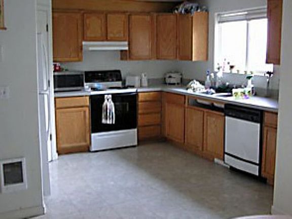 Duplex w/fenced yard, w/d hookups, garage, dishwasher, range, refrigerator. Located in area of older, mostly privately owned/occupied homes. (Interior photo of 5297 Leota)