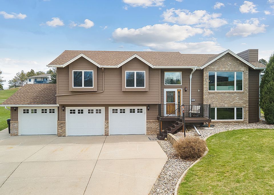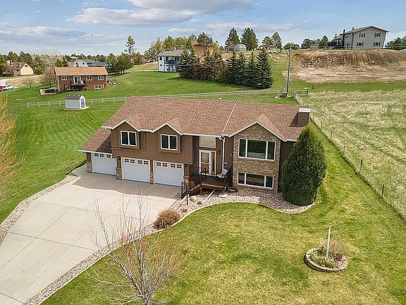 Location! Location! Location! In the highly desirable and pristine neighborhood of Countryside South rests this beautiful and well-maintained home. Positioned perfectly on a quiet cul-de-sac, this .65-acre property offers a spacious front yard and lovely tree-lined driveway, with plenty of open space and privacy on all sides. Nestled in a gorgeous setting, this coveted neighborhood delivers wonderful walking paths, multiple playgrounds, and close to hiking trails. Countryside South offers easy and close access to Sheridan Lake and other Black Hills recreational areas yet is still near to shopping in town. This home boasts a large flat lot, providing the space and opportunity for additional buildings in the backyard as well as space for RV/Boat. The oversized 3 car garage has a newer apoxy floor (2021) and plenty of room for vehicles as well as additional floor space for your hobbies. New custom built-in storage cabinets and a work bench (2022) provide ample space for all your tools. The main level boasts an open concept living area, dining room, and a large kitchen, with an abundance of counter space. The gas fireplace is a lovely centerpiece in the vaulted ceiling living room. Large windows bring in natural light and display beautiful tree line views from the living room, dining room and kitchen. Entertain or relax with your morning coffee on the newer Trex deck (2020) off the dining room with open space, vistas, and the sounds of nature. 3 bedrooms including the master and 2 full bathrooms are located on the main living area. In the basement you will find additional living space and/or workspace along with the 3rd full bathroom and laundry room. A long window brings in natural light to the lower level while also providing a picturesque view of the front yard. Other upgrades include newer vinyl split fence (2020), newer exterior paint (2019), newer garage doors (2020), newer 50gal furnace (2020), new roof/gutters (2024), new interior paint (2023), new luxury vinyl floors (2024). Contact Aimee Dalessandro 951-415-2153 for showings. 2.5% Buyer's agent commission Buyer and/or buyer's agent to verify all measurements and info