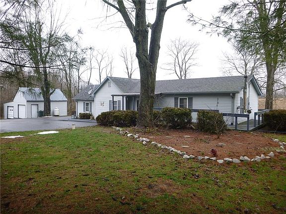Spread your wings. Updated rural farm house on over 4ac. Private setting. Enjoy the view of your choice with the 3 sided wrap around deck. Efficient galley kit is open to the great room/dining area. Beautiful natural wood ceiling. Newer HVAC, water heater & woodstove. New roof coming in 2018! Amazing 24x45 pole barn has 14' OH doors, HVAC, sep metered elec, insulated. Car lift stays. Plus another 2 car detached garage. Near Fillmore, IN. See it today!