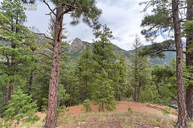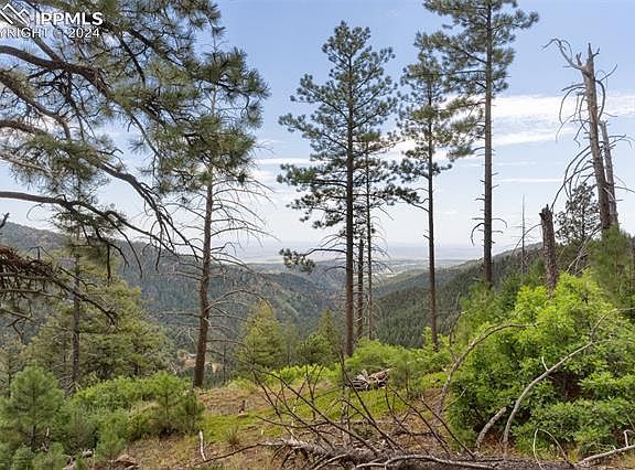 This secluded 21-acre parcel is nestled deep in the majestic mountains of the front range behind Cheyenne Mountain. This property is a true sanctuary, enveloped by a lush landscape of towering pine and vibrant aspen trees. You’ll be captivated by the breathtaking 360-degree views that stretch across the valleys and plains to the East, and the mountains peaks to the West. The rocky formations that punctuate the landscape add character and a sense of rugged beauty, inviting adventure and exploration. Nestled in a serene clearing, there is a rock pond, its edges framed by native stones. Adjacent to the pond, a new woodshed offers covered space to keep wood for your campfire. This idyllic setting offers ample opportunities for outdoor activities, whether it's hiking, wildlife watching, or simply soaking in the natural beauty. With its secluded location yet convenient access to nearby amenities, this parcel presents the perfect canvas for your dream home or getaway. Embrace the tranquility and splendor of mountain living in this unparalleled piece of Colorado paradise. There are multiple viewpoints and level areas to consider for building an off-grid oasis. Little Turkey Creek is a private road easement running through the property which provides access to three lots beyond this one. Please note, this property is completely off-grid with no utilities available. There is a voluntary HOA consisting of other property owners in the subdivision to maintain the private road.