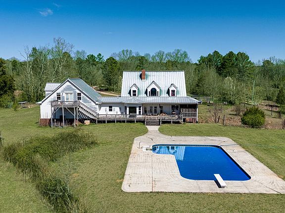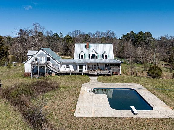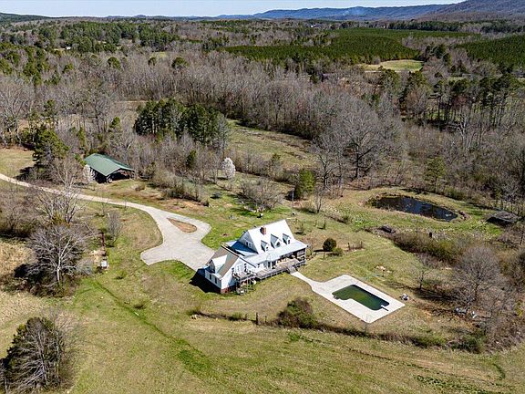 Welcome to this sprawling, 200acre retreat nestled at the foot of the Chattahoochee National Forest, surrounded by majestic mountains and lush woodlands. This secluded property features multiple pastures, pristine springs, ponds, a flowing creek, and winding trails. With springs approved for bottling, there's fantastic potential for a rewarding business venture. The land is rich in fertile soil and diverse ecosystems, equipped with a pole barn for equipment storage, multiple fenced pens, chicken coop and a spacious barn. A historic farmhouse, once a stopping point on a trading route, adds character and charm to the estate. Additional features include several septic systems and a bomb/tornado shelter, ensuring safety and convenience. The landscape is adorned with flourishing fruit trees—peach, apple, plum, and pecan—alongside blueberries and wine grapes, all supported by efficient irrigation systems for easy maintenance. A dedicated nature plot invites wildlife, with abundant deer and turkey making their home here, creating a true paradise for nature lovers. The custom-built home spans over 5,000 square feet and, while it needs TLC, is a blank canvas to make it the perfect spot for entertaining while ensuring everyone has their own space. With four large bedrooms with ensuites and an additional two bedrooms and baths, there's plenty of room for multiple generations or guests. The home has been designed to take full advantage of the panoramic mountain and pasture views from various rooms. Key features include a durable metal roof, seamless metal siding, a water filtration system, a 500-gallon buried propane tank, and four HVAC systems, with propane providing backup heat for the main house. The heated pool is perfectly positioned to showcase breathtaking views.