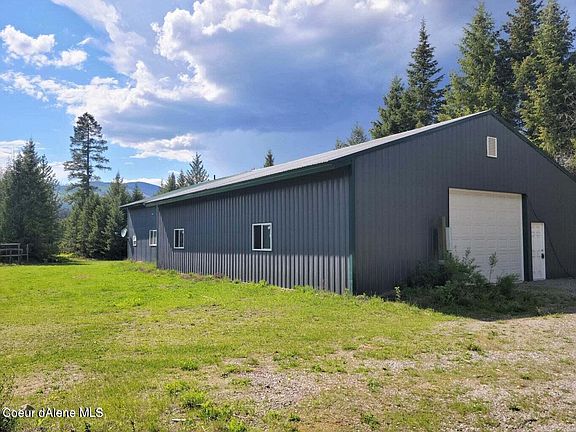 This is your chance to own Five flat acres in North Idaho! Paved roads to property for easy access year round, plus it is located across road from State Land for year round recreational fun! Home is 1 bedroom and 1 bath with open floor plan, just waiting for you to fix it up. New pellet stove (2022). Property has a newer 34 x 48 ft shop with 14x14 ft overhead door complete with an electric opener, man door, 60# snow load roof, concrete floors, fully insulated, lights and 220 electric; shop built in 2017.