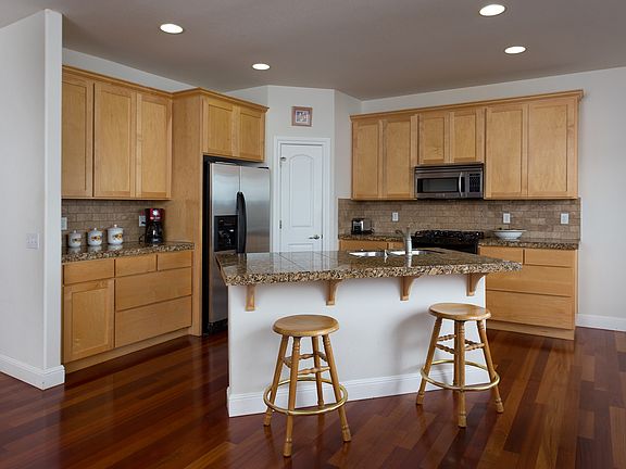 With 6 bedrooms and 3 bathrooms, this house has room for everyone! Features such as Brazilian cherry wood floors, stainless appliances, granite counters and brand new carpet make this house shine. High ceilings add to the spacious feel. Master suite includes a relaxing jetted tub. Large rec room downstairs. Great dry storage area under home could be workshop. Outside you'll find a wonderful 3-mountain view, Trex deck, patio and fenced yard!