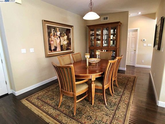 Beautifully remodeled Five Canyons home with large backyard. Bright open floor plan. Large modern open kitchen with lots of cabinet and counter space. Granite counter tops. Large center island. Breakfast counter. Breakfast nook with nice view of backyard. Formal dining room. Beautiful engineered wood floors. Large family room with elegant fireplace. Open backyard that backs to hillside. Large rear patio that is perfect for entertaining. Beautiful staircase leads to 4 bedrooms upstairs. Bright master bedroom with vaulted ceiling. Beautifully remodeled contemporary master bath. Master walk-in closet. Remodeled upstairs hall bathroom with two sinks. Laundry room with cabinets.
