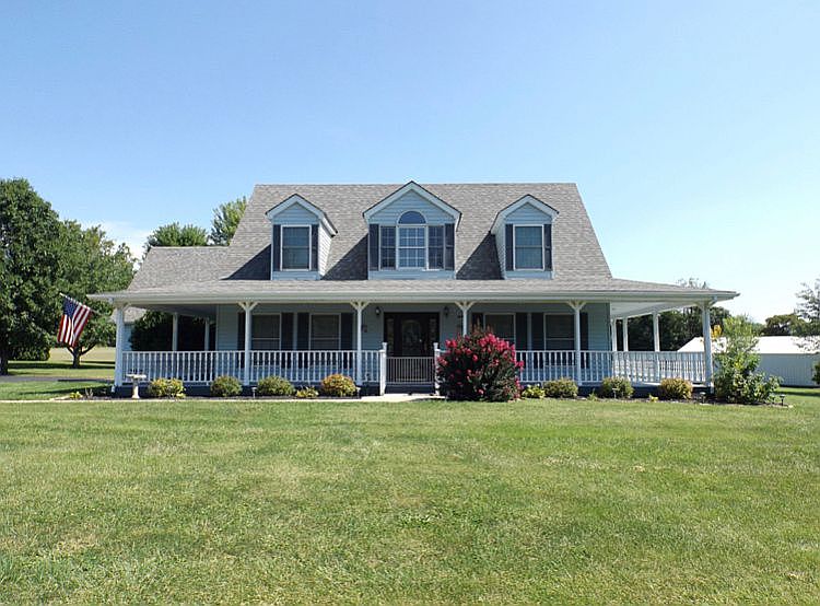 Custom built home uniquely situated on 3 wooded acres. Cherry cabinets, vanities and foyer floor. 2 car attached garage, mud/laundry room, separate dining room, master suite on main floor, wrap around porch with gorgeous sunset/sunrise views. Call 812-390-7052 to schedule appointment for qualified buyers.