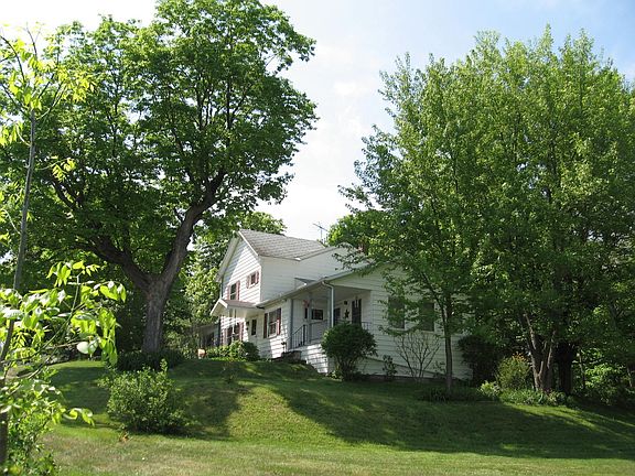 You'll love the beautiful scenic view from this property! Mature trees & plantings, valley view, spacious side yard. Large wooded gully behind house & 2+ acres of natural land! 1st floor features living room, kitchen & dining room, bedroom, bath & 24x12 sun room addition. Plus (2) 2nd floor bedrooms. Vinyl windows, oil furnace & 200 amp C/B '04/ Water softener '07, water tank '14. 275 gallon oil tank & well pump '15. Detached barn /carport. Come take a look!This home offers the 100% Money Back Guarantee! Some restrictions apply.