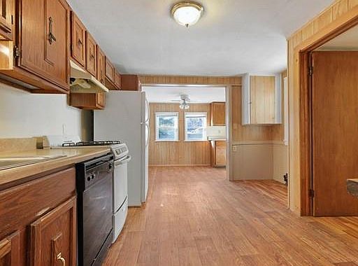 Clean and bright home offers a bonus first floor bedroom! Large open concept kitchen and dining room area has shining floors and loads of cabinets. First floor washer and dryer hookups. Newer bathroom with sliding glass doors. Basement offers lots of storage space and work area. The fenced in backyard has an over-sized patio area. Spacious mudroom at backdoor. Seller has not lived in home, but has lovingly maintained this rental property. Great for first time home buyers. Located on side street, minutes from highway, schools, shopping, parks and Milford's bike trail.