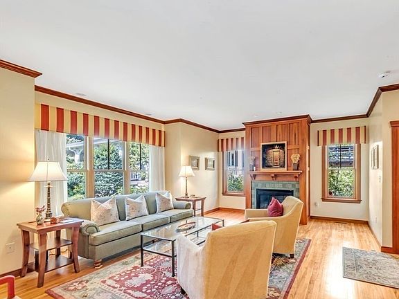 Situated on prestigious Burroughs Street in JP, this townhouse blends elegance with tranquility, just steps from Jamaica Pond and Centre Street. Surrounded by mature landscaping offering a sophisticated retreat. Inside, custom woodwork and warm tones create a serene atmosphere, enhanced by abundant natural light. Features include a fire-placed living room, formal dining room with crown molding and well-appointed kitchen with Birch cabinetry, granite countertops, gleaming hardwood floors, and an oversized window overlooking the lush gardens and private patio space. The versatile second floor space begins with an open room, plus two bedrooms, a bonus half bath with laundry and includes an en-suite & walk-in closet. The sun drenched top floor has two additional bedrooms, full bath and a bonus hallway closet. Three off-street parking spaces, (1 garage with EV charging), steps to your private back entrance. Modern comforts include central A/C, and a full basement for additional storage.