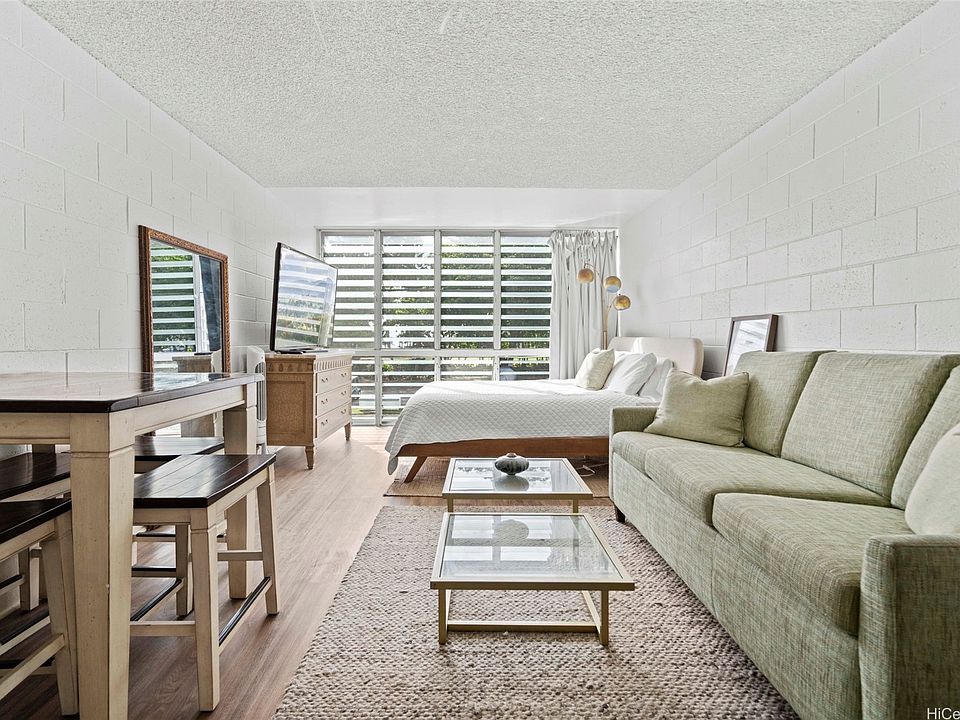 Enjoy serene coastal living in this beautifully updated studio in peaceful Punalu'u. Features include new cabinets, a modern bathroom vanity, luxury vinyl flooring, and fresh paint throughout. Take in stunning views of the ocean and Ko?olau Mountains. Amenities include a pool, BBQ area, sandy beach access, secured entry, guest parking, and one assigned stall. Conveniently located near the Polynesian Cultural Center, Turtle Bay Resort, and iconic North Shore beaches.