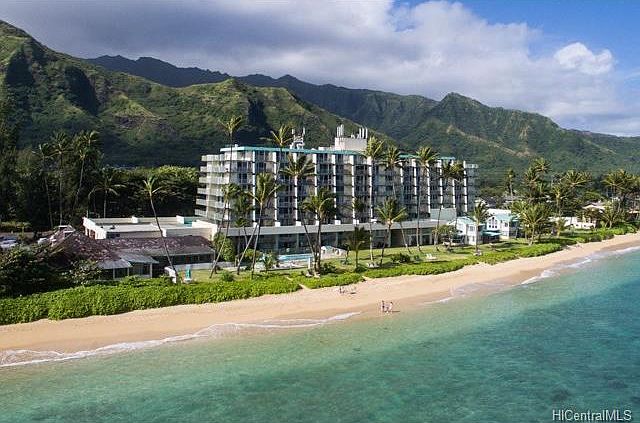 Excellent condition, Rarely available corner/ground floor cottage unit. Cool and airy with new kitchen cabinets, counter-top, Vinyl wood laminate flooring throughout. Enjoy Oceanfront living on the beautiful sandy beach . Resident manager, security, exercise room and pool, sauna, BBQ area, meeting room with kitchen, car wash area, trash chute, pool; on bus line, close to Brigham Young University and Polynesian Cultural Center.