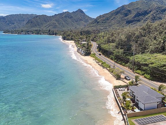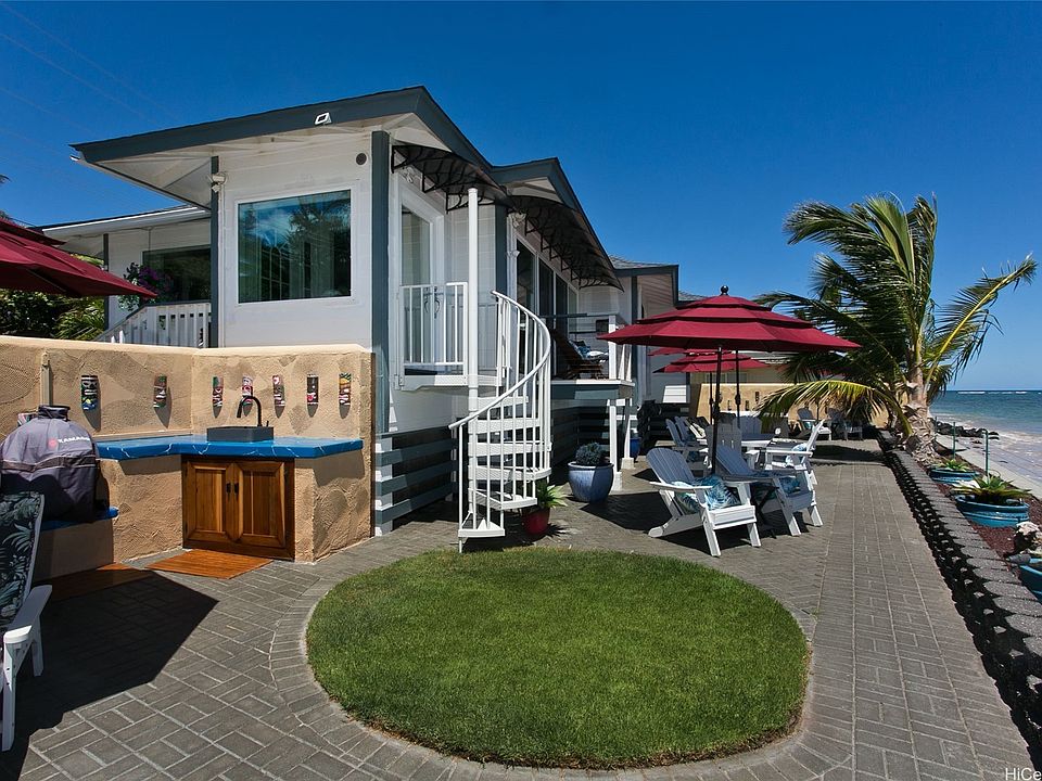 Step outside to 180° views stretching from mauka to makai. Bordering a white sandy beach, enjoy unobstructed vistas of turquoise waters, sandy coastline, and the majestic Ko?olau Mountains.