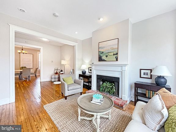 Charming 1908 bay front rowhouse with original details on treelined street in LeDroit Park. Double entry foyer, light filled living room with fireplace, cute reading nook, gracious dining room with pocket doors, updated kitchen with rear exit to yard, deck and detached garage. Powder room. Upstairs, light filled master bedroom with beautiful bay front windows, updated bath and good closet. 2 additional bedrooms and full bath. There is a rear deck as well. Fully finished lower level with kitchenette, full bath, laundry/utility room with rear exit.