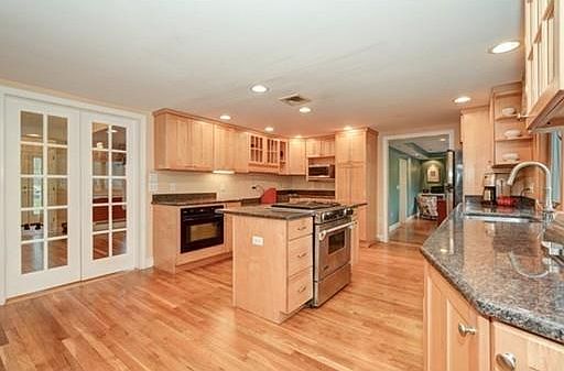 Major expansion and remodel offer updated flair and flexible floor plan. First floor includes living room with vaulted ceiling, recessed lights, wood burning fireplace built in bookcases and combines with cozy dining area. Updated granite kitchen with stainless appliances, center island and plentiful counter space. The step down family room includes surround sound, recessed lights and the gas fire place. First flr. bedroom, full bath and office plus hardwood floors through-out complete the living space. Second floor has master bedroom suite with soaring ceilings, spa like master bath, and double closets. Two additional good size bedrooms, full bath with laundry and 15 x 15 plus Bonus Room with access to walk-up attic. Lower level features cozy carpeted living space with walk out access to the back yard. Tiled mudroom and entryway, interesting architectural detail, plentiful windows, low maintenance wrap around deck and easy living floor plan. Option for nhood pool!