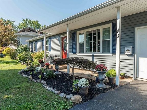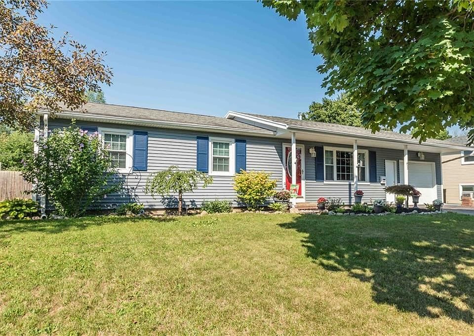 OPEN HOUSE CANCELED! Beautiful ranch with sprawling backyard and large inground pool! Professional landscaping to compliment the bright red front door. Many updates! Upgraded pool with brand new liner and new pump. Updated AC, furnace, hot water tank and Vinyl siding! Living room with large window to allow natural light in! Perfect kitchen with plenty of space and a sliding glass door to the patio! Partially finished basement with full bath, laundry and prep kitchen! The patio is great for entertaining and the large pool is a hit on hot summer days! The shed is ideal to store all of your outdoor tools!