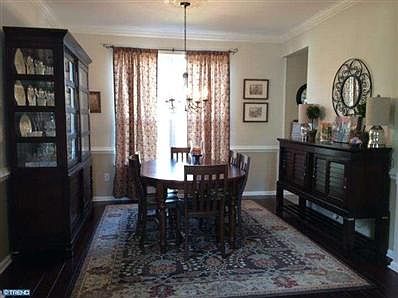 Warm & Inviting is this Beautiful 3 Bedroom 2 1/2 Bath Colonial situated on a Premium Lot in Desirable Santa Fe Development Burlington Township. Foyer greets you with ceramic tile flooring & upgraded front door w/storm door. Gorgeous Brazilian Cherry Hardwood Floors flow within the Living Room & Dining Room areas allowing for entertaining family & friends with accents of crown & chair moldings. Eat-in-Kitchen features stainless steel appliance package ceramic tile flooring Corian countertops rich cherry cabinets seamless sink upgraded fixtures & pantry plus door access to the over-sized Backyard Patio. Family Room includes wood burning fireplace with wood mantle & slate around oak hardwood flooring ceiling fan with light crown molding & recessed lighting. The 2nd Floor offers Brand New Carpet throughout! 2nd Floor Master Suite offers vaulted ceiling two closets (one walk-in); Master Bath offers Jacuzzi soaking tub tile stall shower two marble sinks upgraded lights & fixtures. Two other nicely sized Bedroom's with double door closets are in close proximity to the 2nd Full Bath with two sinks & tub/shower & Linen Closet. Additional Features Include: 2-Car Garage with openers & workbench area Separate Laundry Room with shelving Newer AC/Heater & Water Heater Front Porch Professional Landscaped property which overlooks across the street Green Acres Township Park. Great Location to all major roadways & military bases!
